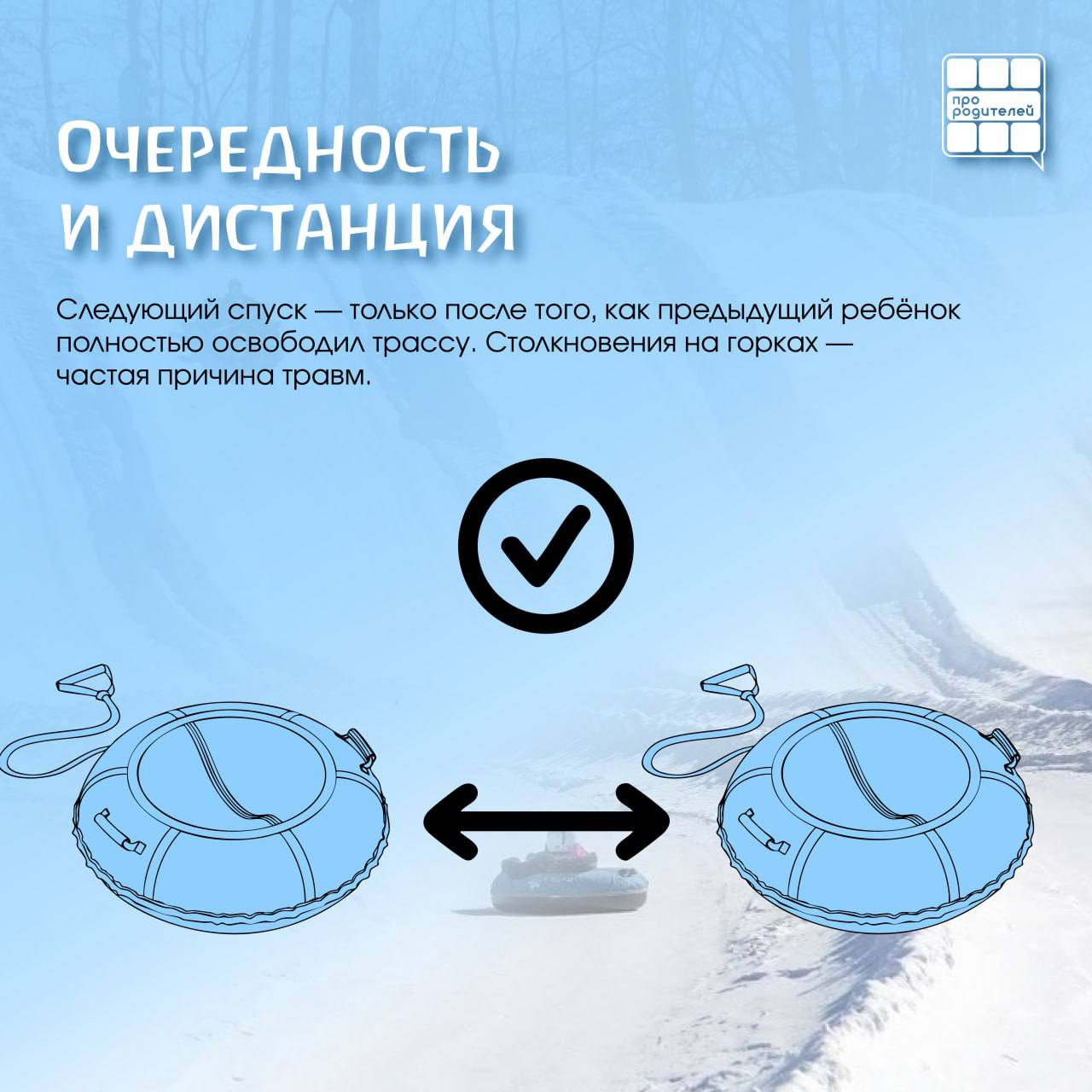 ☑️Мы подготовили эти карточки, чтобы помочь родителям спокойно и понятно обсудить с детьми основные правила катания на тюбингах и горках. Соблюдение этих простых рекомендаций поможет сохранить зимний отдых радостным, а главное — безопасным.